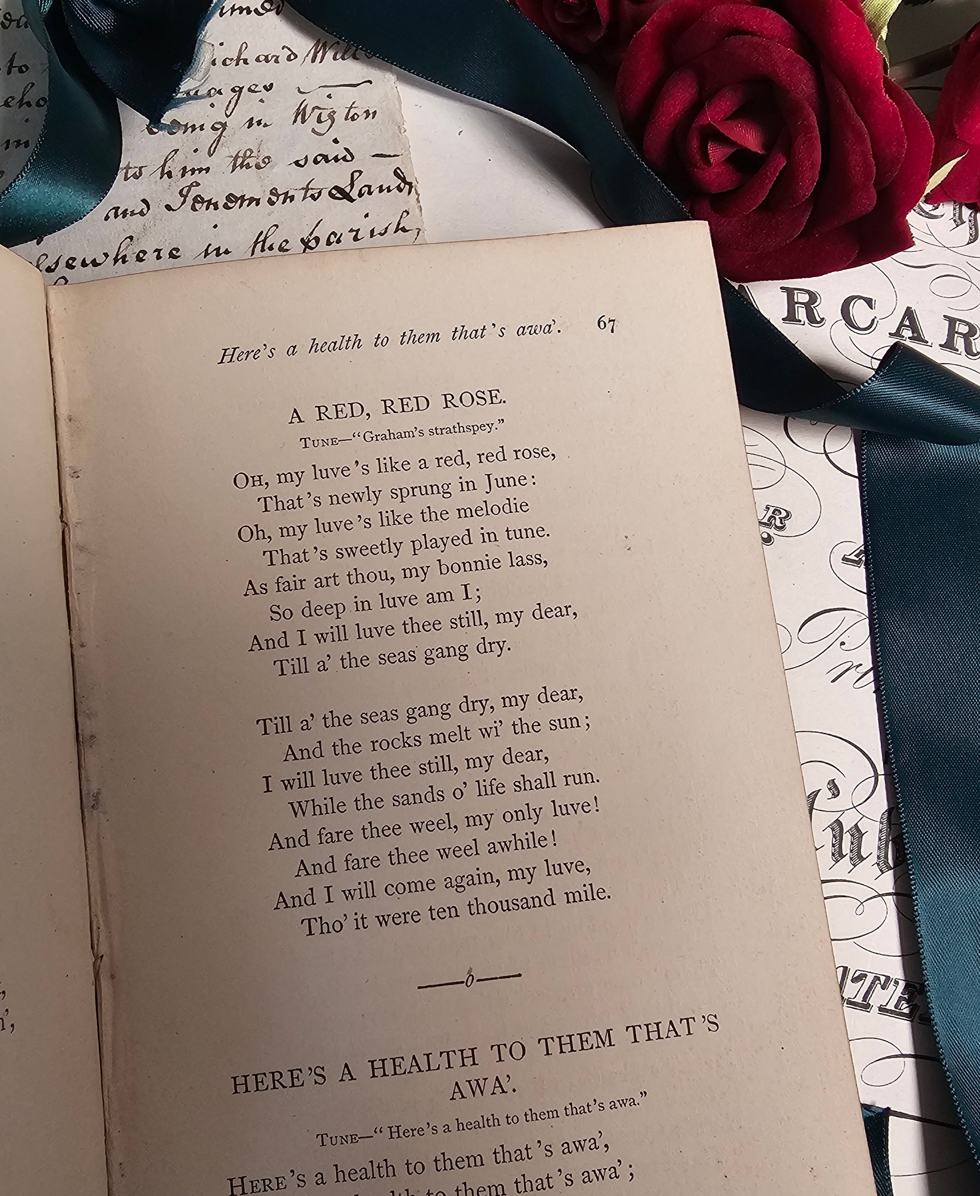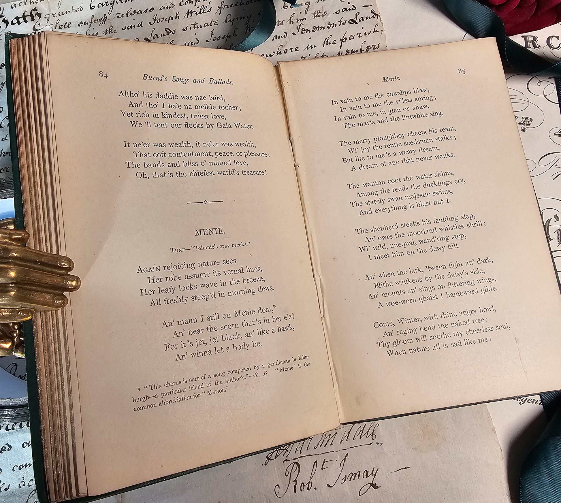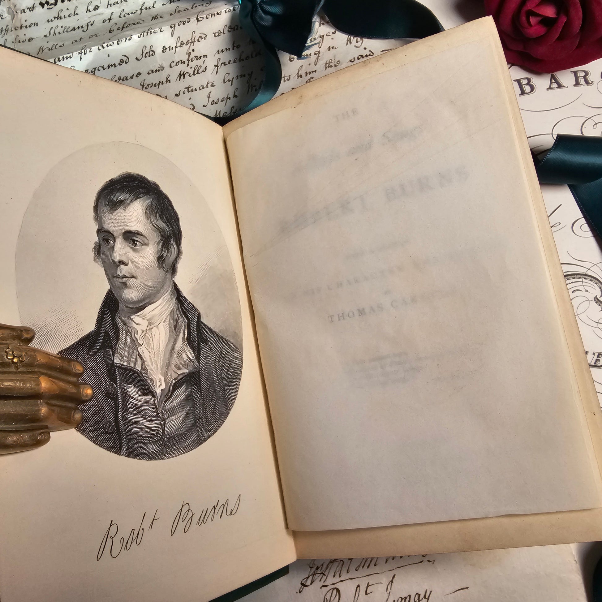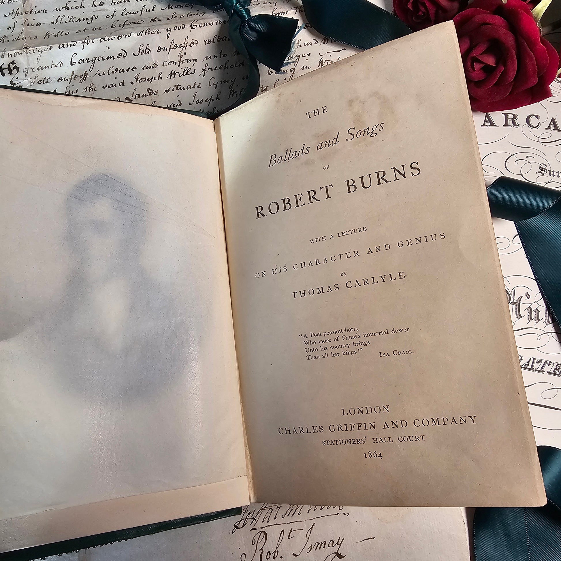 In good condition, here is a charming antique hardback copy of The Ballads and Songs of Robert Burns. Published in 1864 by Charles Griffin & Co., London. With some black and white engraved illustrations, and gilt edged pages.