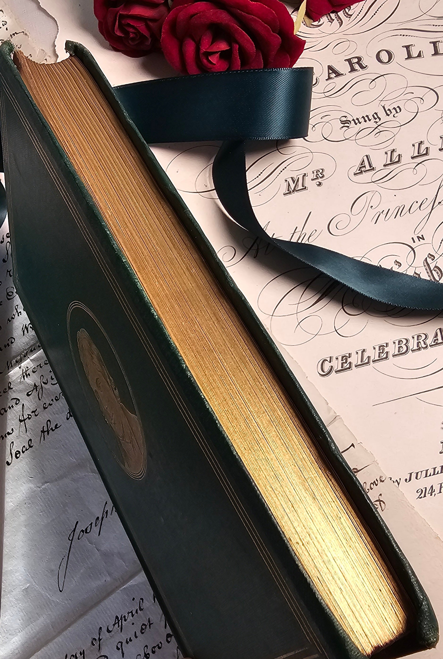 Green cloth covered boards have gilt decoration to the front and spine. Again in very good order, clean and un-faded. The gilt is shiny bright.