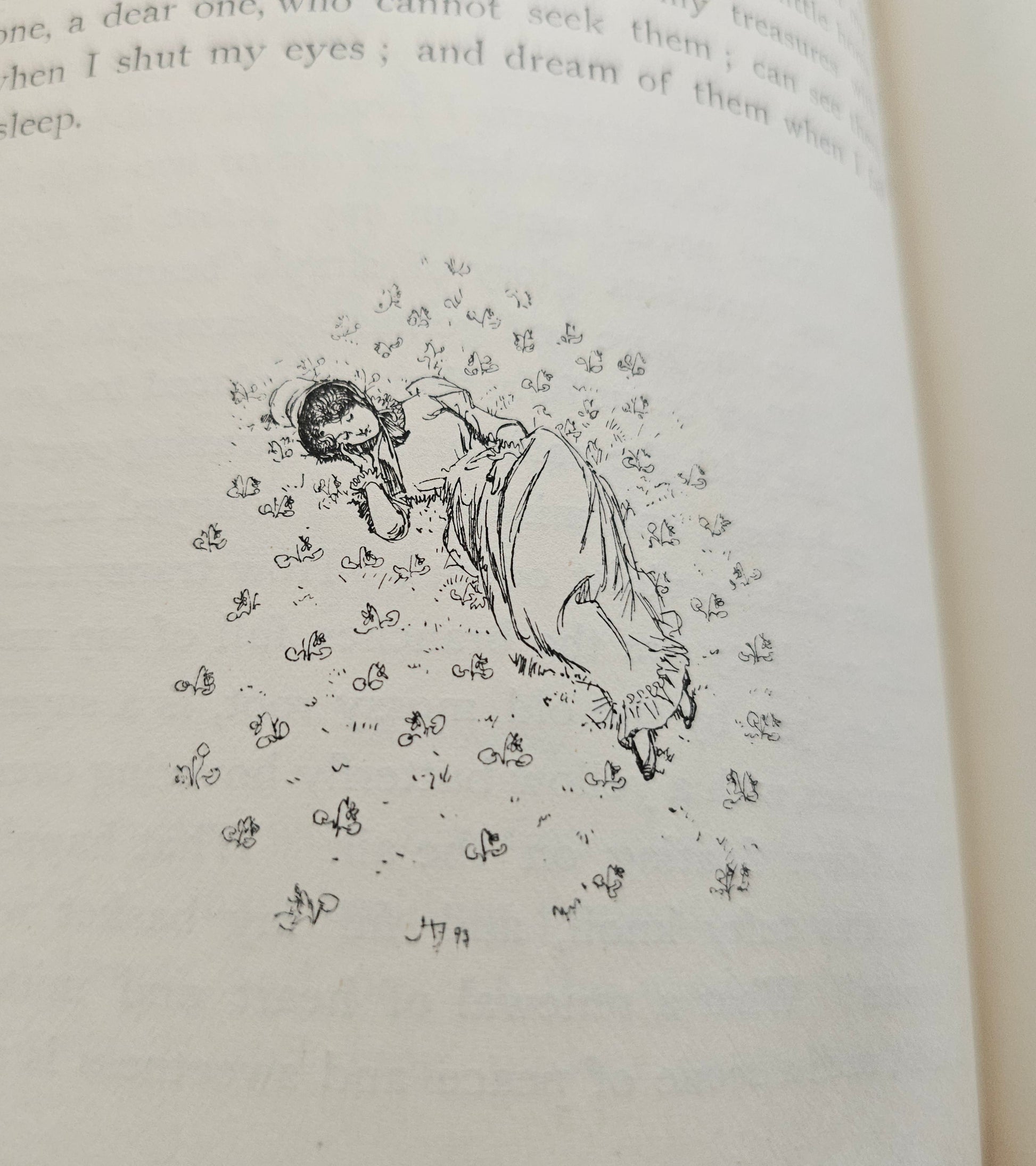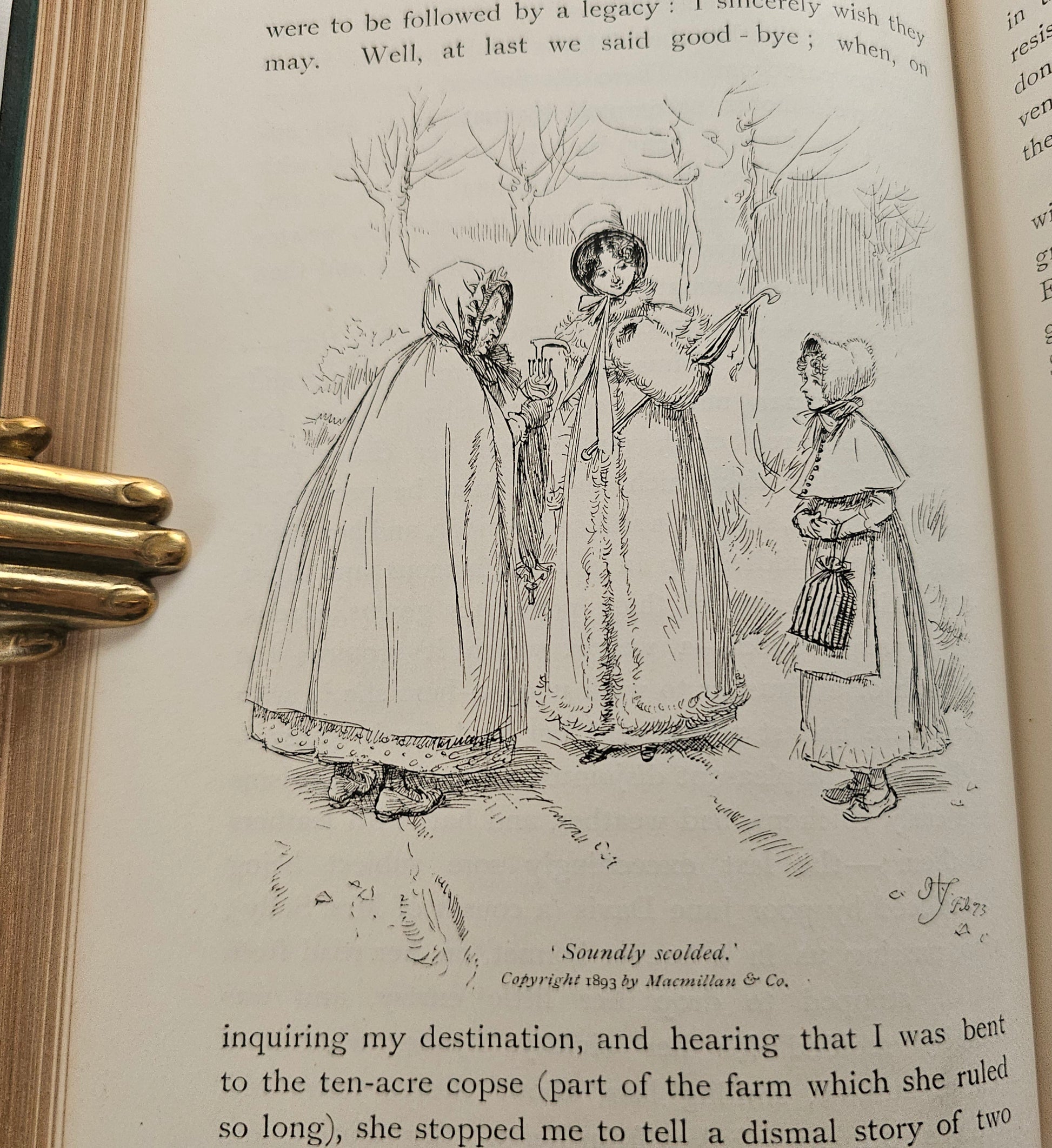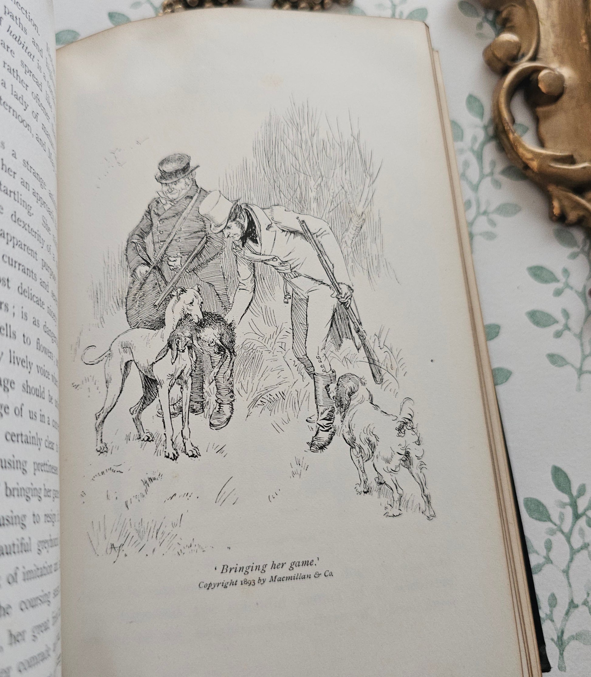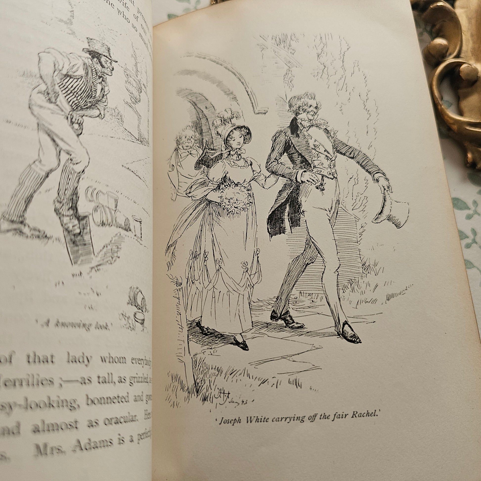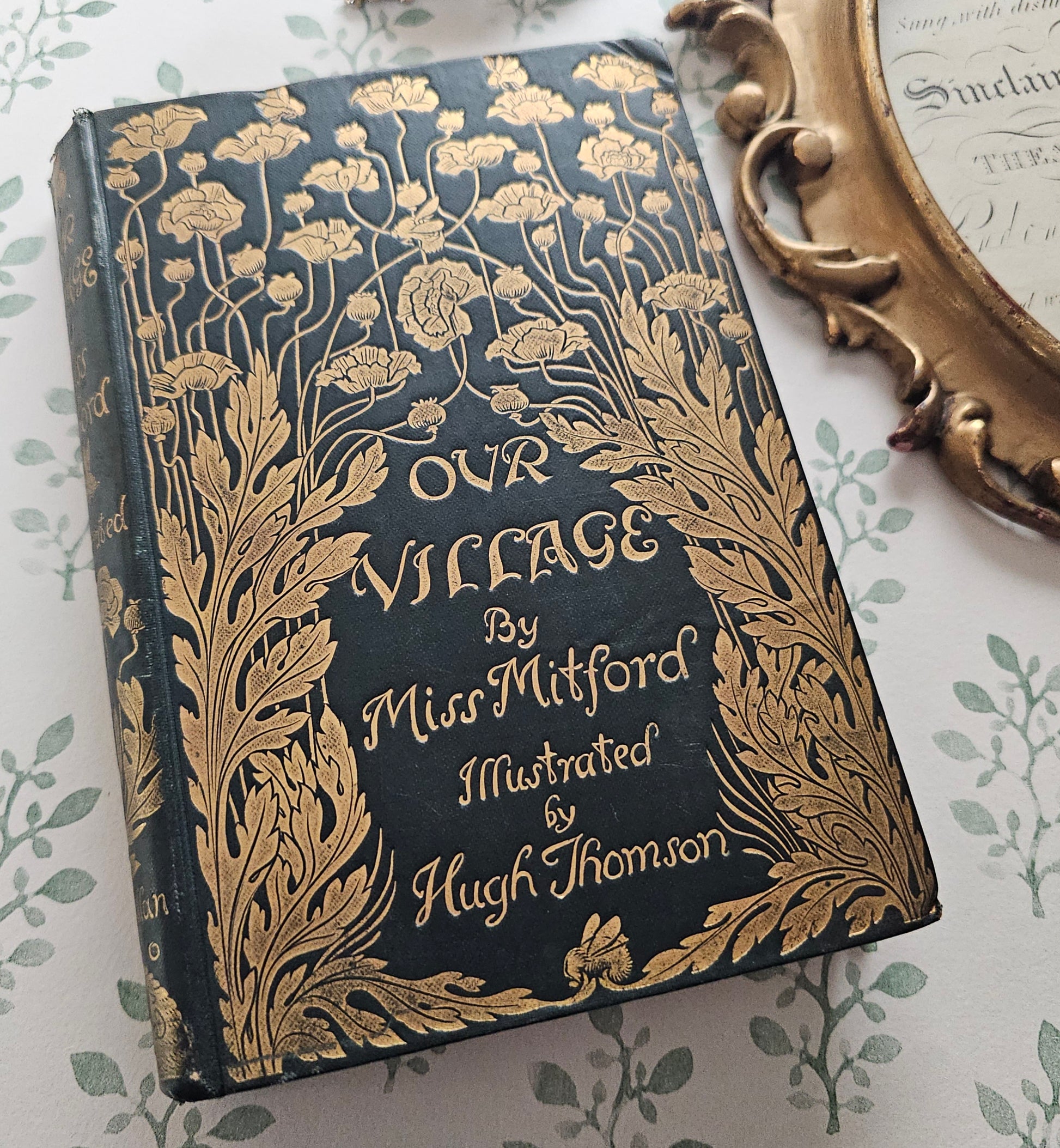 A lovely antique copy of Our Village by Mary Russell Mitford. Published in 1893 by Macmillan & Co., London and with one hundred wonderful line drawings and decoration by Hugh Thomson. A book in the series known as The Cranford Series of dark green and gold decorated, illustrated titles.