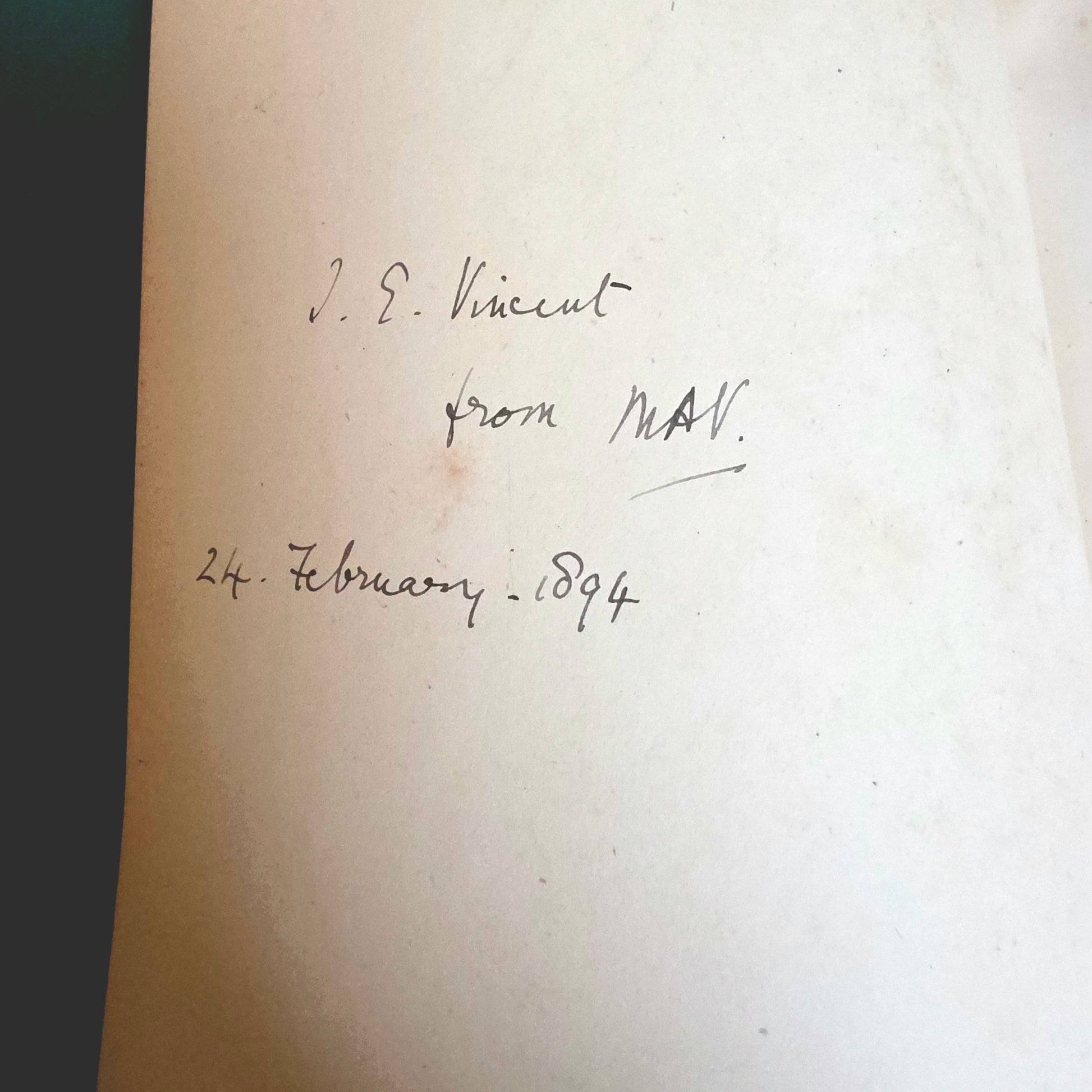 Pages are clean, bright and tightly bound with just mild tanning and the occasional spot. Inked inscription to verso of the front free endpaper, dated 1894. No other writing or markings of previous ownership. Frontispiece illustration still has the original tissue guard (this has tanned). Partial crack to rear spine paper. All edges are shiny gilt. Has developed a lean over time.