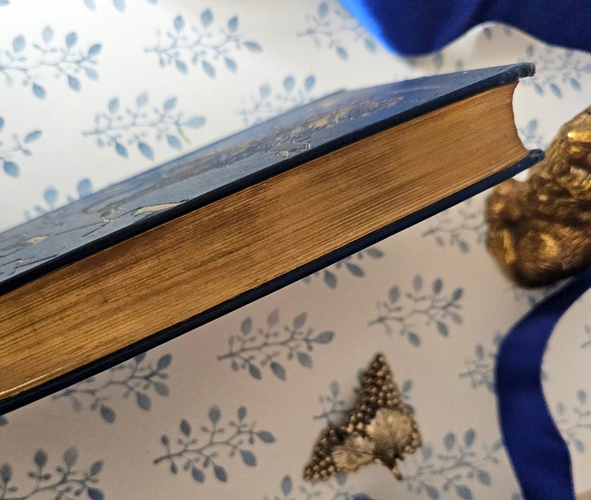 In striking blue cloth over boards with shiny gilt decoration to the front and spine of a lion and bear respectively. Again in top order. Just a little mild rubbing to the cloth on the corners and spine ends, and a thin scuff line on the back - but minor. An extremely eye-catching edition.