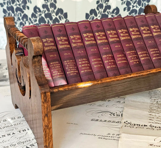 1932 The Miniature Works of Shakespeare Set / Allied Newspapers / Housed in Wooden Bookshelf (Included) / 1st Edition Thus / Good Condition