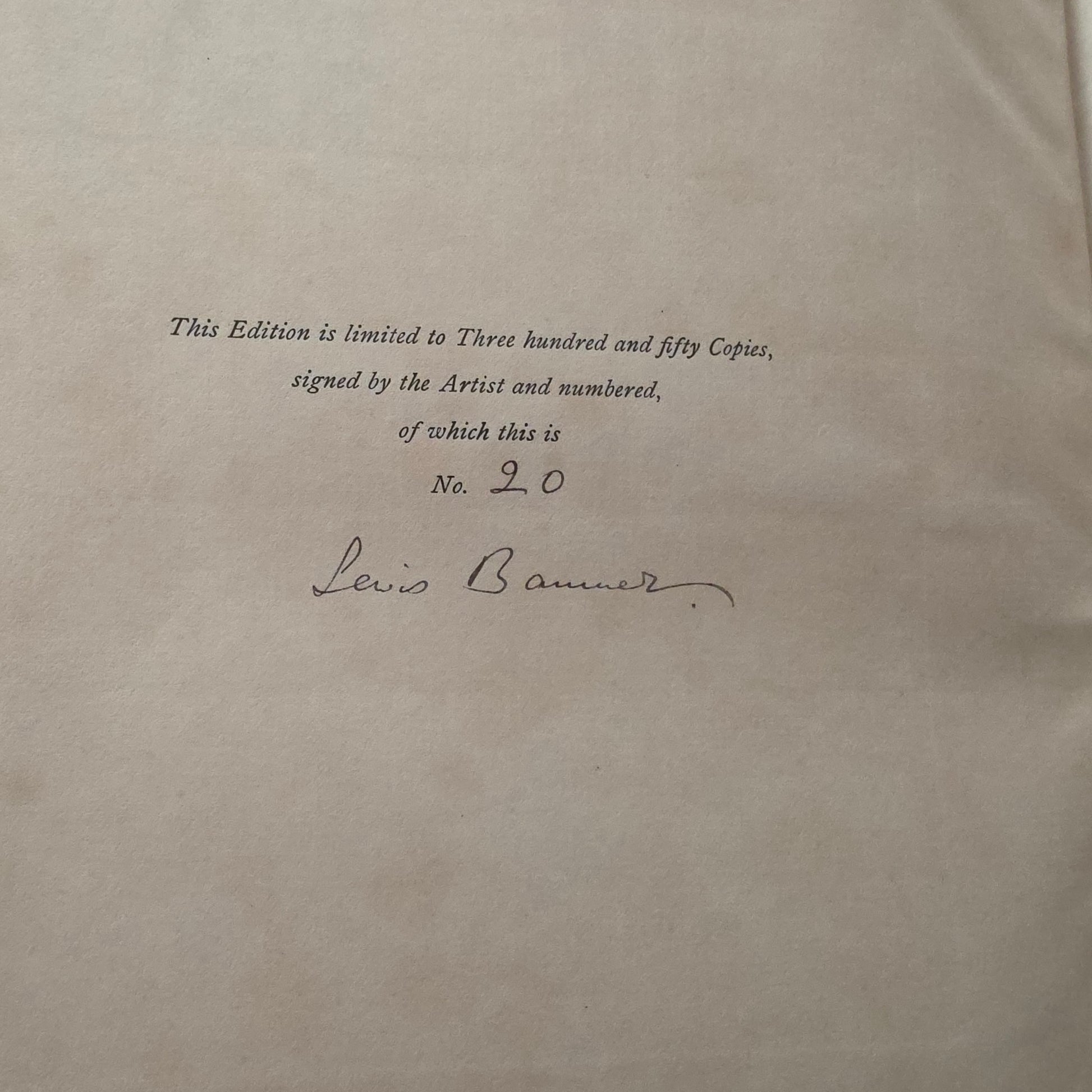 By far the best copy of Vanity Fair, in this gorgeous edition, that I have seen. Beautiful, bright vellum binding - with ribbon ties still present. (Ribbon ties are almost always missing.) Being a limited edition of only 350 copies, all signed by the illustrator Lewis Baumer. This copy is signed and numbered "20". Undated but would have been published in 1913 by Hodder & Stoughton, London. There are twenty illustrations in total.