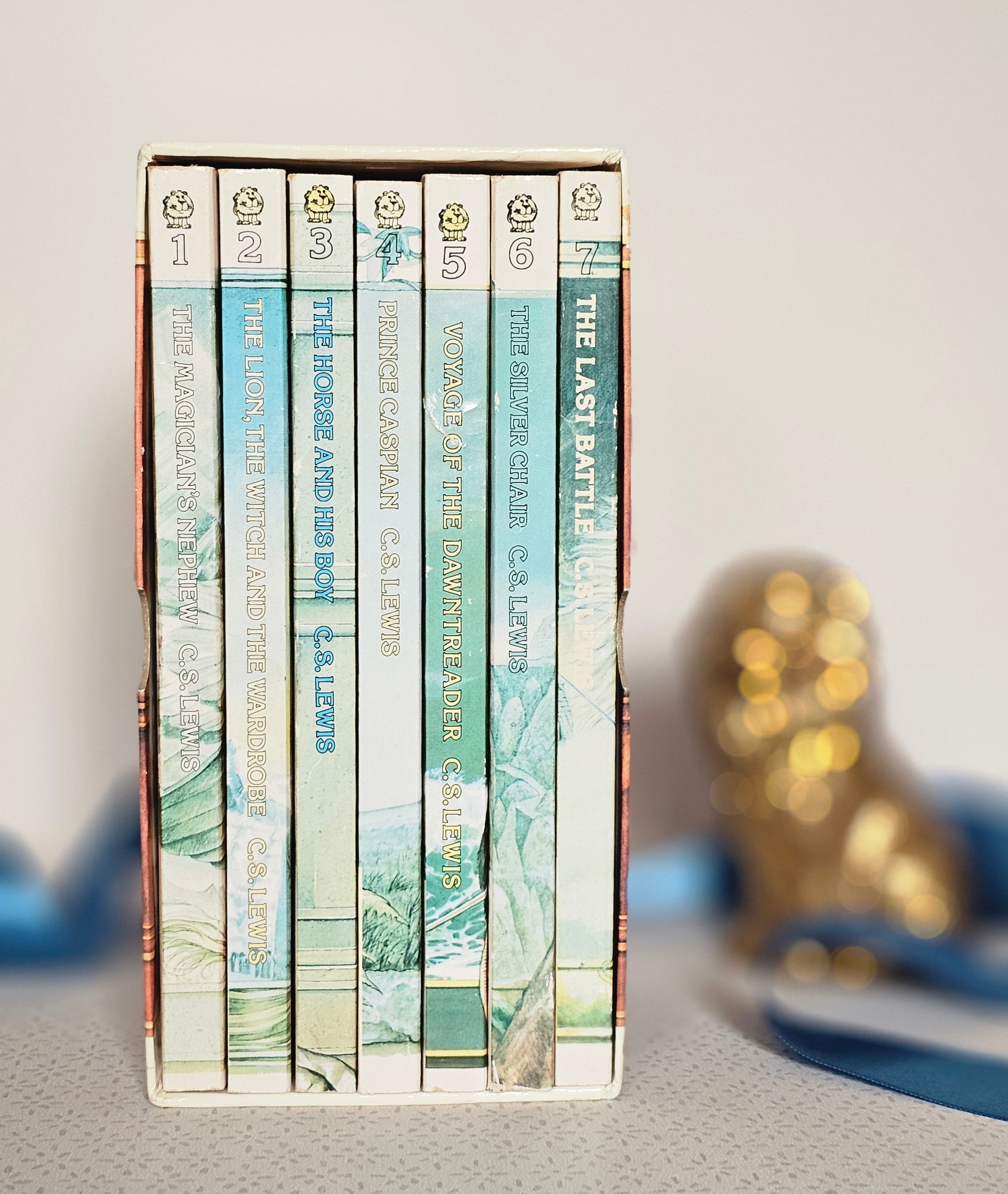 In very good condition here is a lovely vintage boxed set of the Complete Chronicles of Narnia by CS Lewis. Published by Collins, London in 1989.