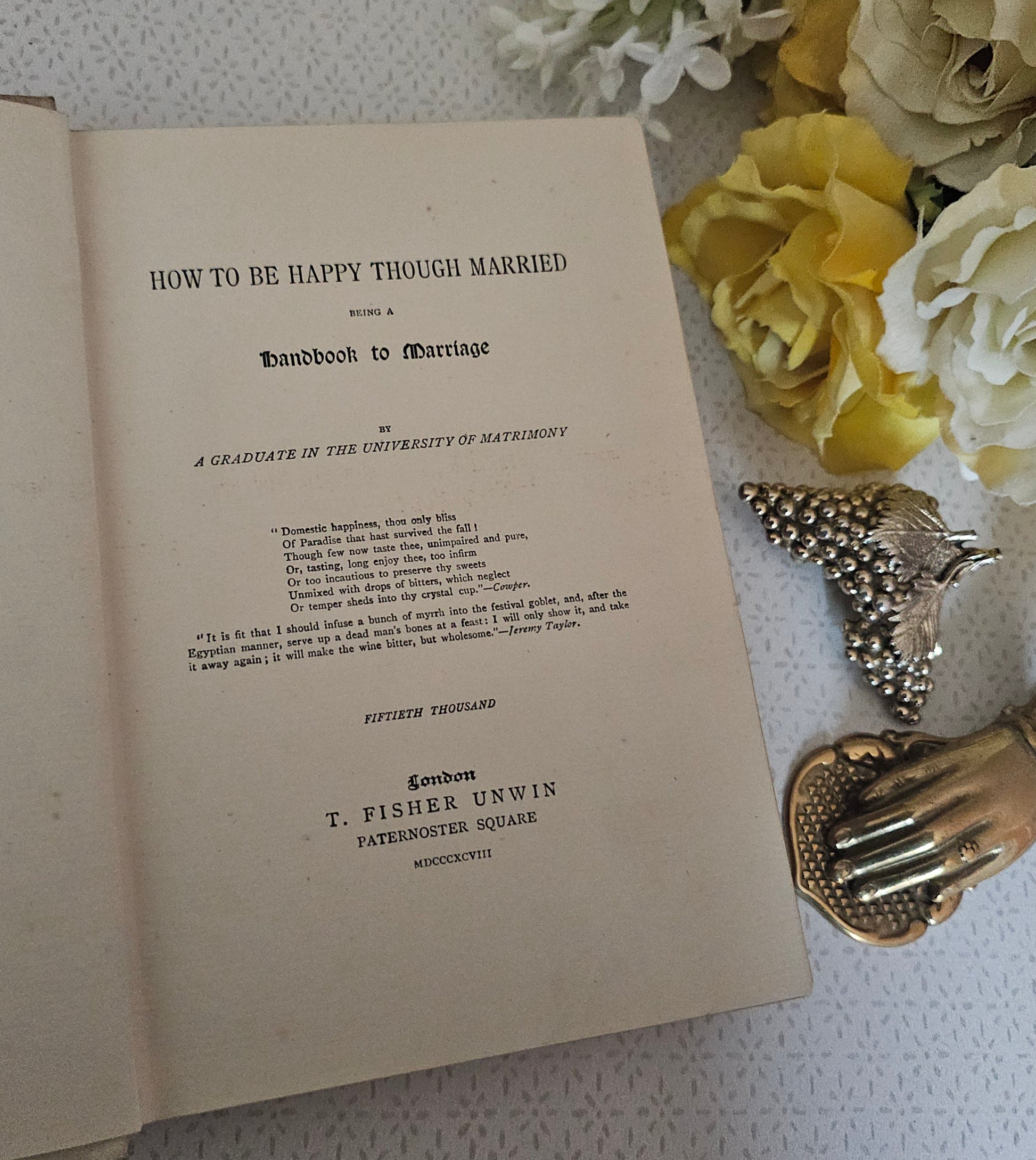 Your antique copy of How To Be Happy Though Married will be wrapped with care in tissue and ribbon* and sent well packaged. I am always happy to add a gift card with message to the parcel.