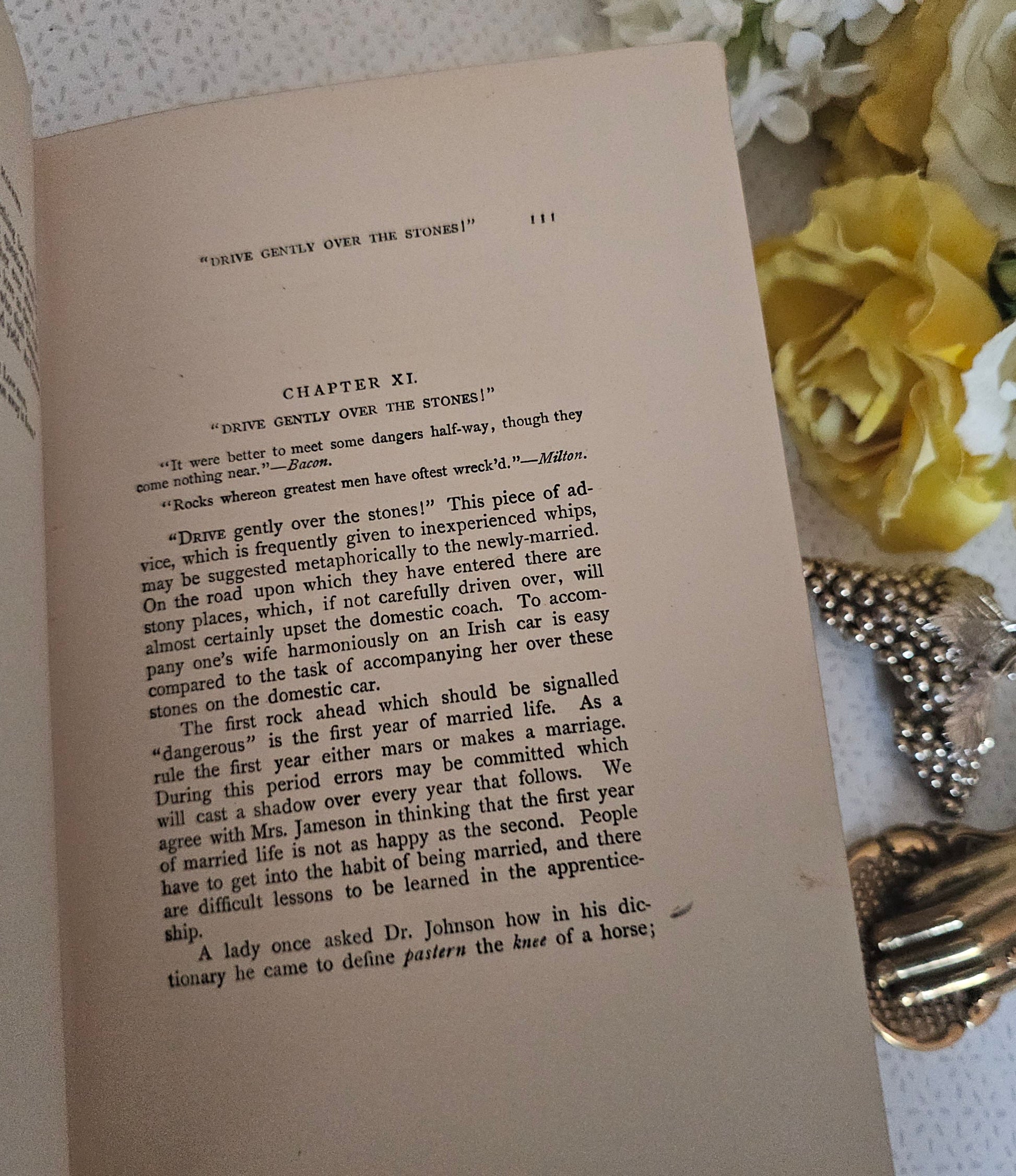 Inside the pages are clean and tightly bound. Lacks the front floral free endpaper and so opens directly onto the half-title page. With a few neat pencil underlinings and some small pencil ticks in the margins. Nothing too obtrusive. Unillustrated. All edges are gilt.