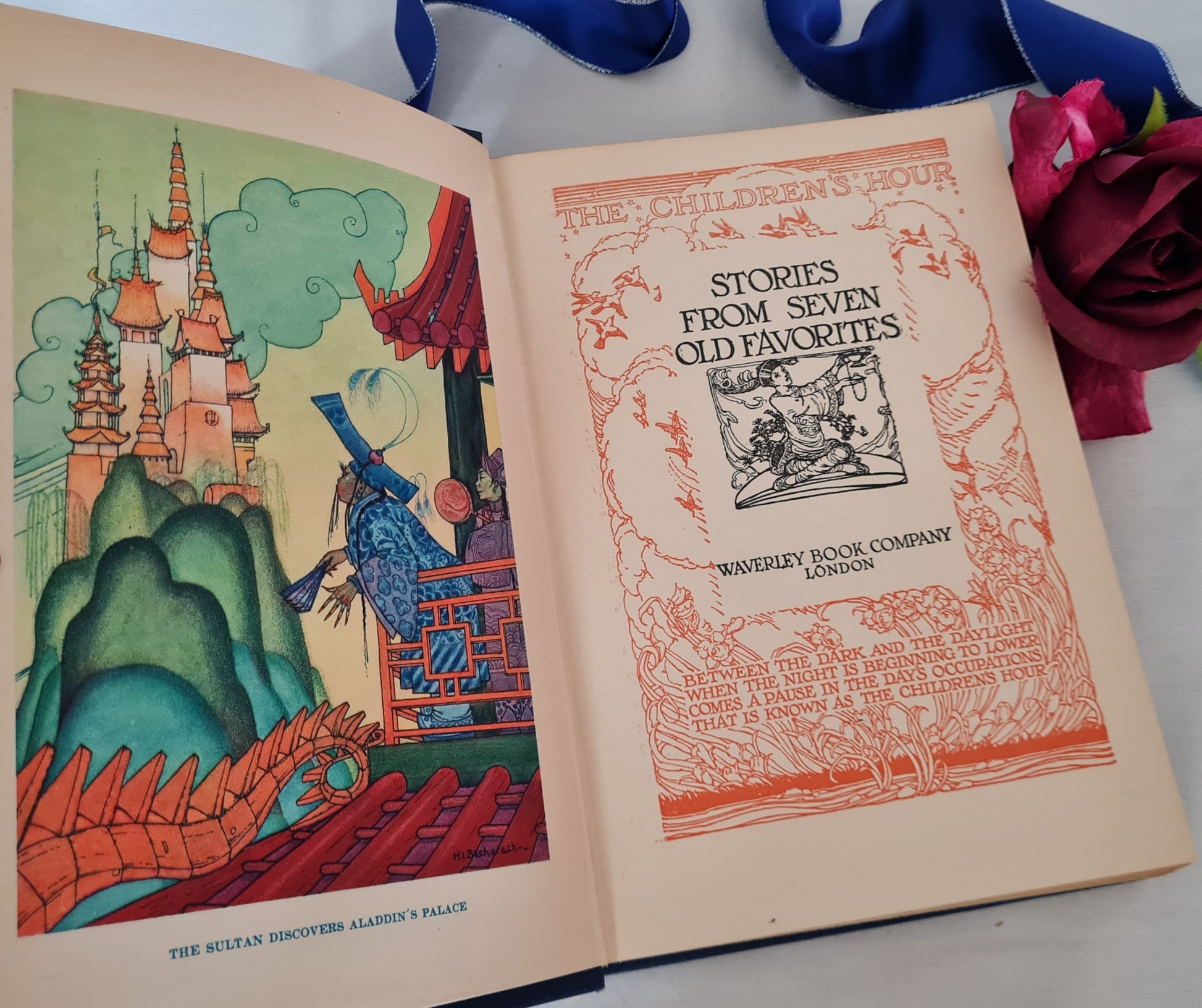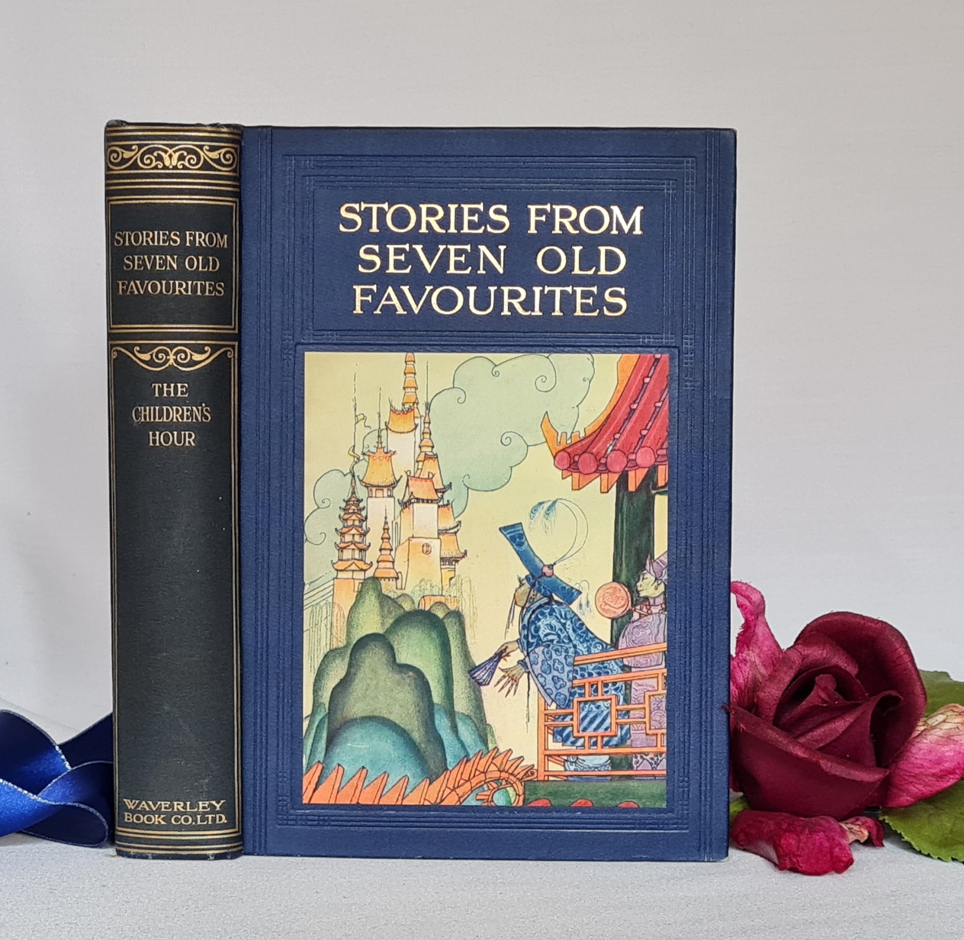 In absolutely excellent condition for an antique title of well over 100 years old. Here is a copy of Stories From Seven Old Favourites published in 1912 by The Waverley Book Company of London as part of a series of books for children called The Children’s Hour in 8 volumes, with this volume being Volume 5 and this is a first edition. Some of the other volumes contain myths, legends, fairy tales and true stories of adventure and exploration (several of these I have for sale separately at time of writing). A beautifully illustrated collection of extracts from the following: