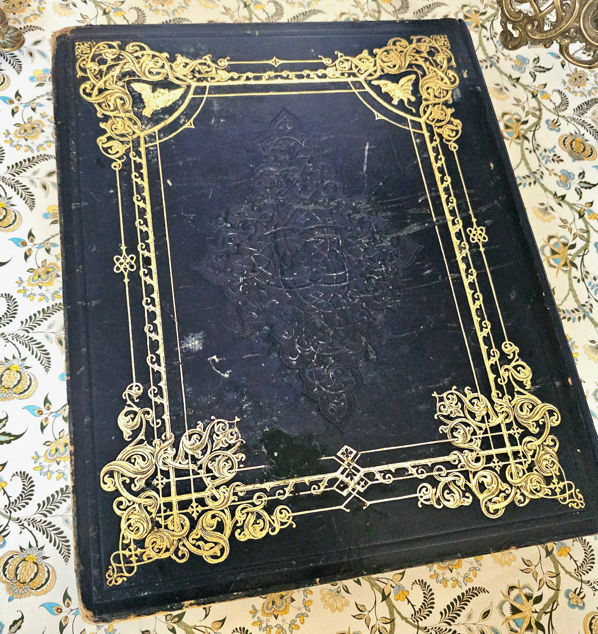 In the original publisher's dark blue leather with lavish gilt decoration to the front, back and spine. Has rubbing and chipping around the outside edges and in particular to the corners to reveal boards, beneath. Has some bumps and scuffs to the leather on the boards. More so to the back than the front (see photos). With one smaller, and one larger areas of loss to the leather on the front and back respectively that look to have been repaired.
