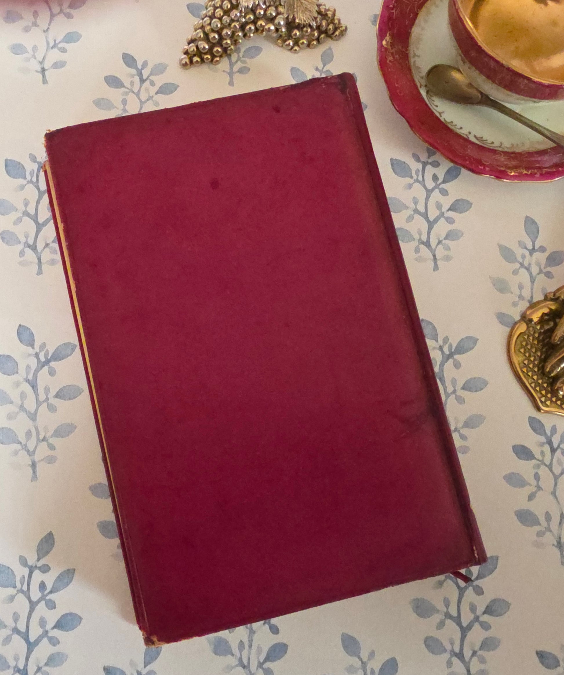 In deep full red leather. Has been re-backed, with a lovely new decorative leather spine, ensuring the binding is good and tight. Has some rubbing to the leather around the outside edges and to the corners. With some loss to the leather at the corner tips (see photos).