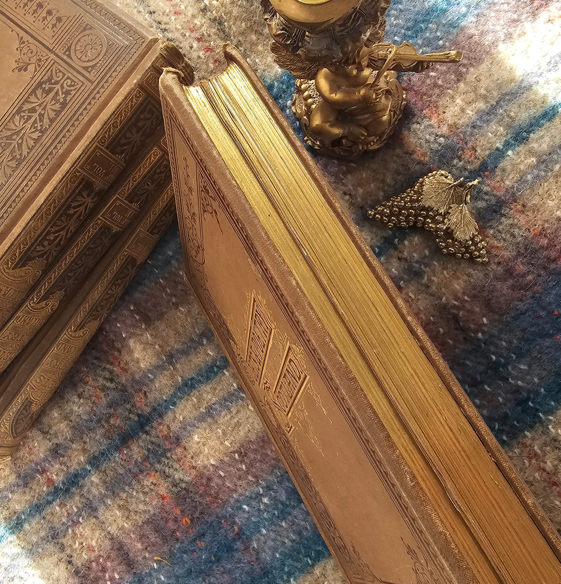 Bound in light brown cloth over boards with ornate dark brown and gilt decoration to the fronts, backs and spines. With a few light marks to the cloth and rubbing to the corners and spine ends. The gilt remains bright, and these look lovely together on display.
