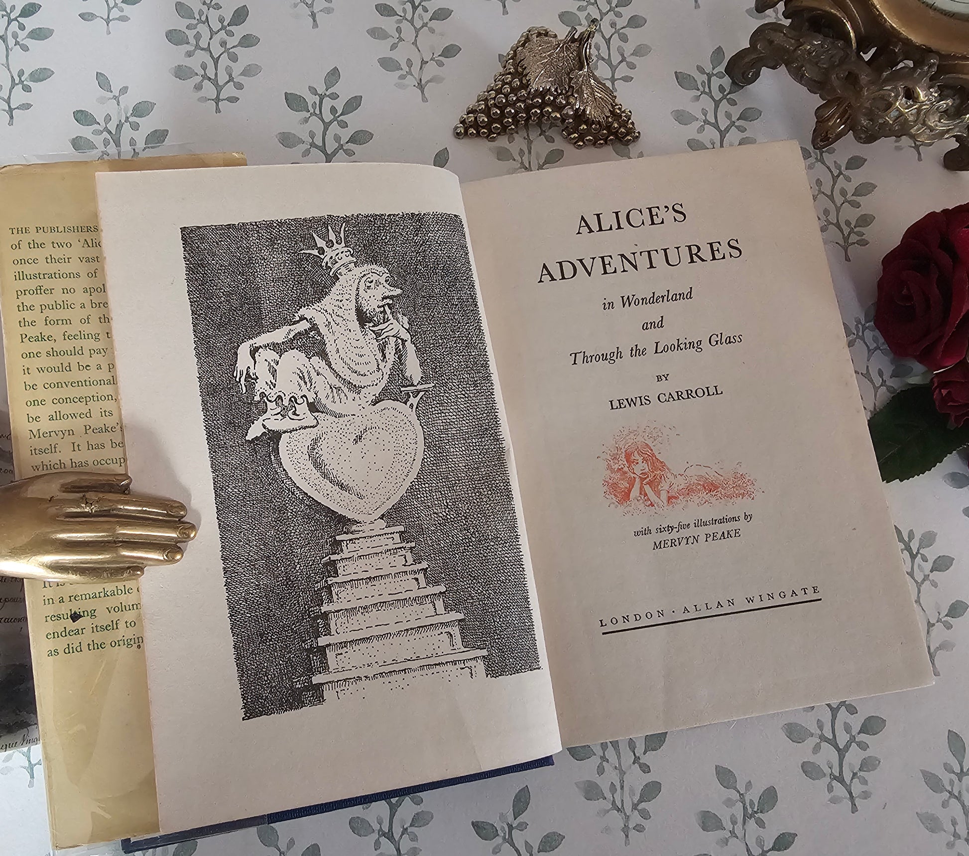 Here is a scarce first edition copy of Alice's Adventures in Wonderland and Through the Looking-Glass by Lewis Carroll. Published in 1954 by Allan Wingate, London. This edition marks the first time the superb Mervyn Peake illustrations were published in hardback in the UK. Highly sought-after by Peake collectors. The book is in excellent condition. It still has the original scarce dust jacket which does have some wear, detailed below.
