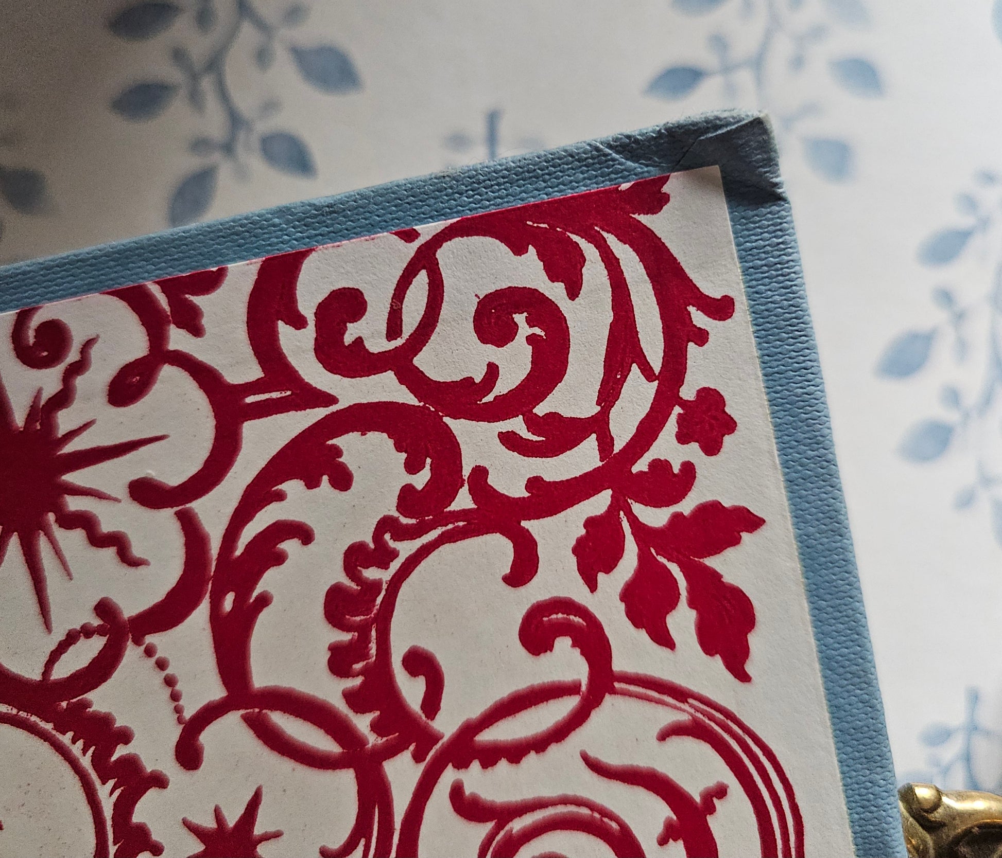 In absolutely gorgeous light blue cloth over boards with ornate gilt and red design to the front, back and spine. All in top order, with just some mild rolling and tanning at the corners and spine ends - but minor.