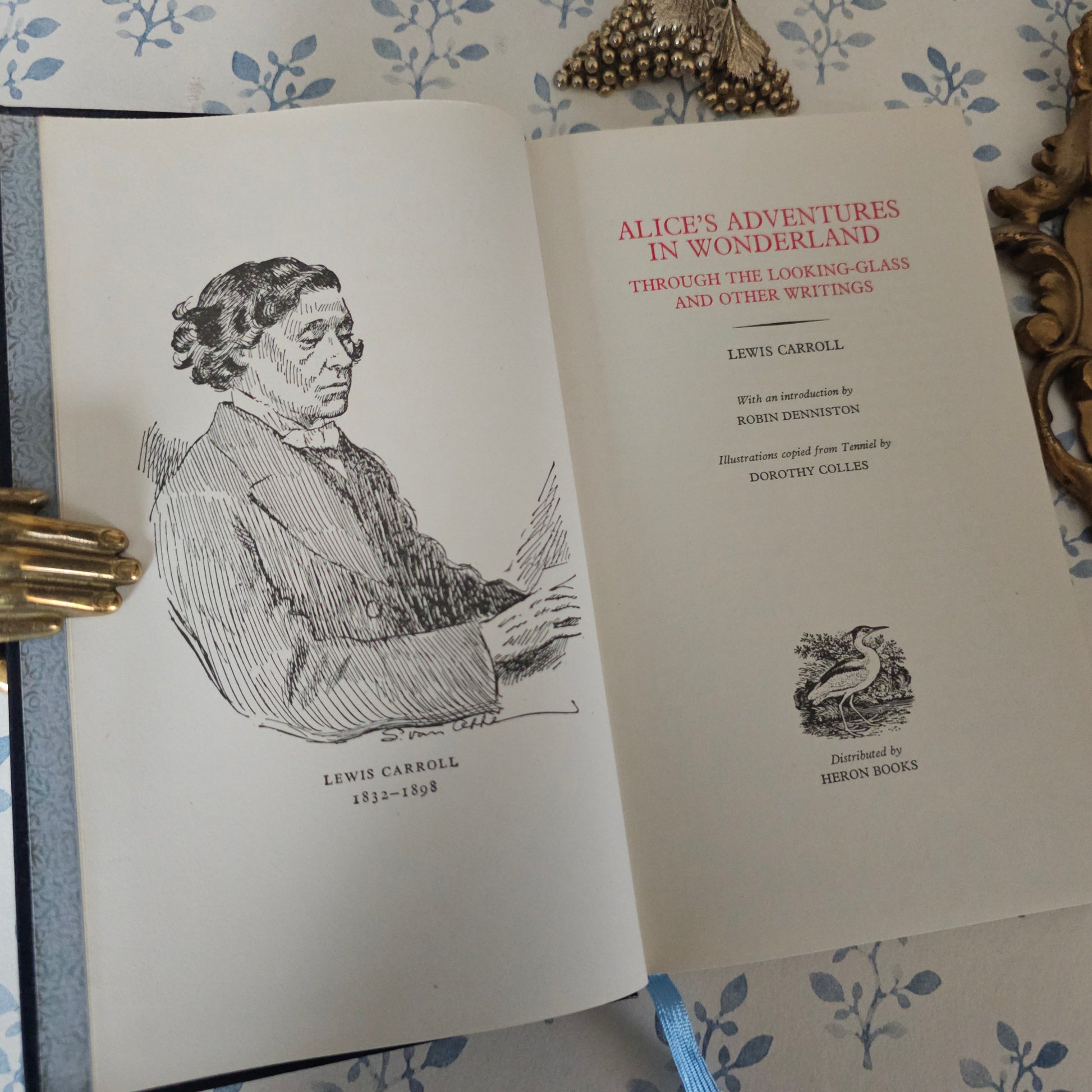 A wonderful vintage collection of the major works by Lewis Carroll. Including Alice in Wonderland, Alice Through the Looking-Glass, The Hunting of the Snark plus Selected Poems. Undated, but published by Heron Books in the early 1970s. Illustrated with drawings reproduced from those of the well-known Tenniel originals and with a blue place marker ribbon. In excellent condition, appears little read - if at all.