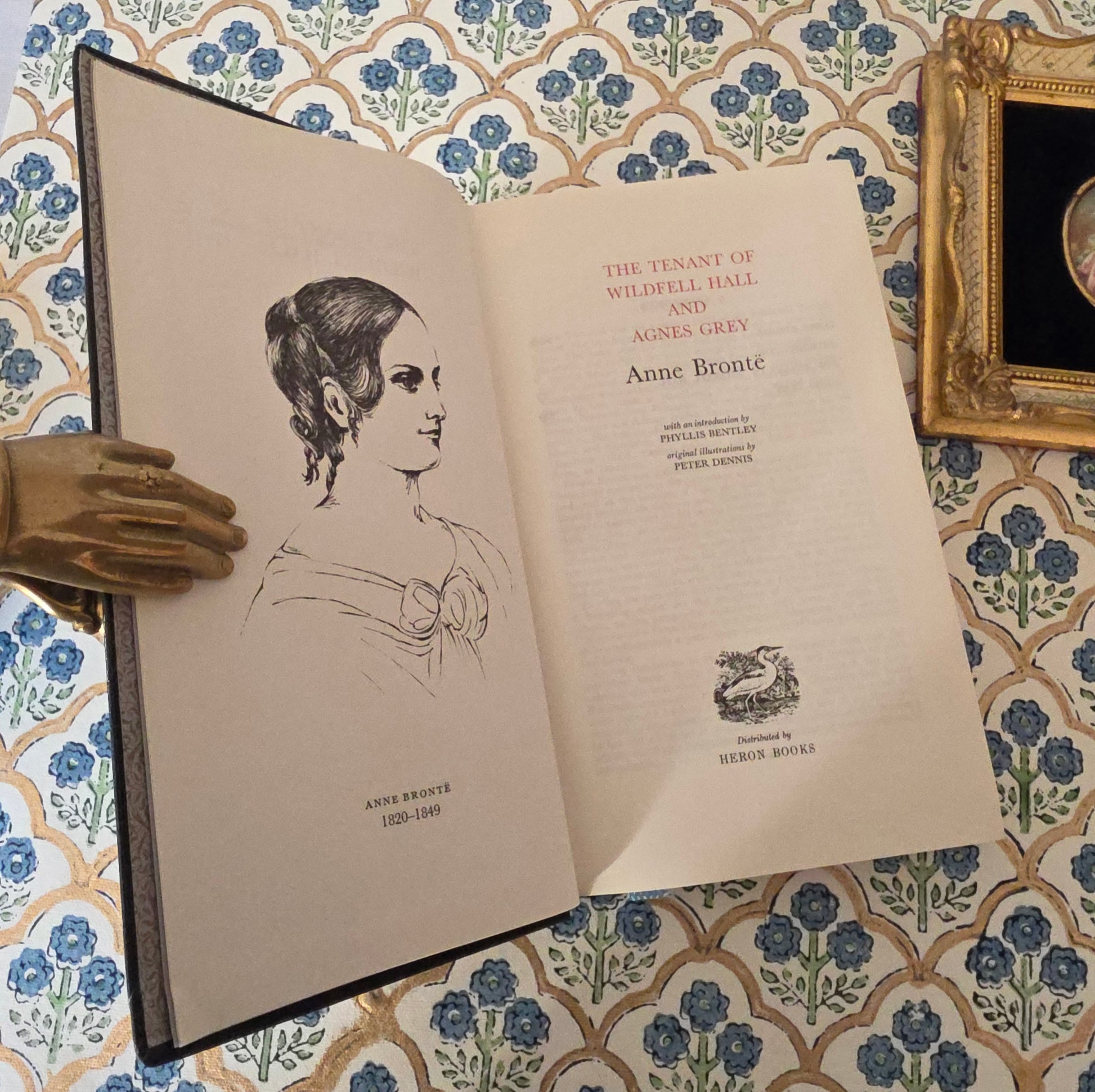 In excellent condition, here is an elegant and attractive vintage edition of The Tenant of Wildfell Hall by Anne Bronte published by Heron Books in their Literary Heritage Collection in 1979. Bound in dark blue faux leather with gilt decoration. Includes black and white illustrations, (see photos) and a light blue place marker ribbon.